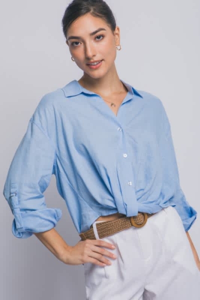 • Front Twist Linen Shirt