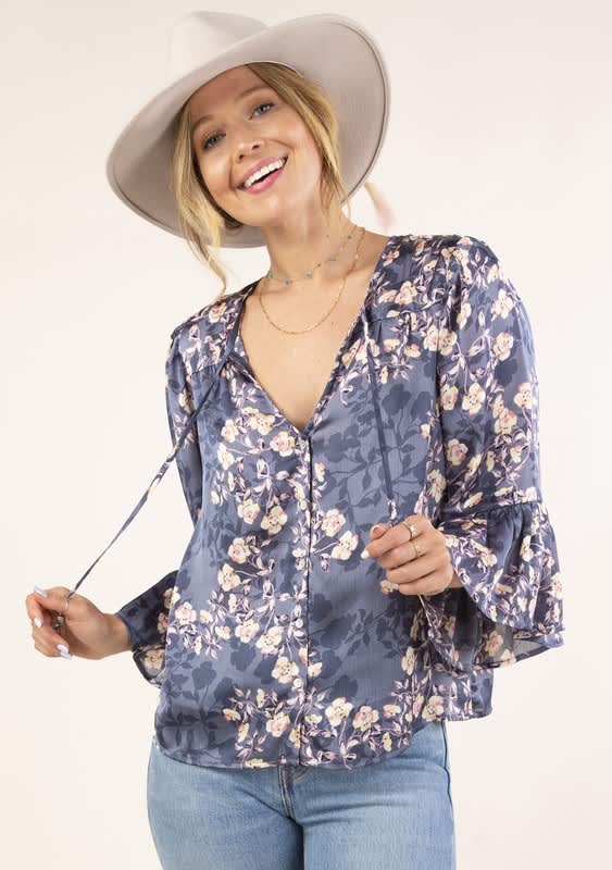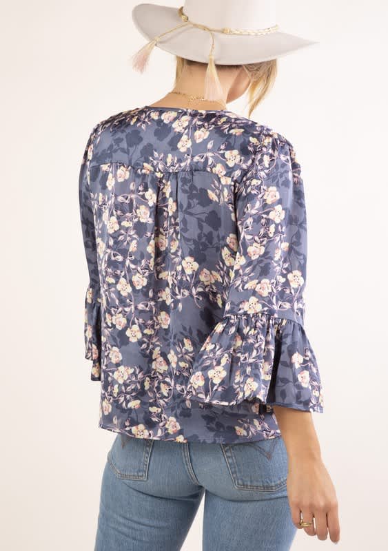 Dusty blue print peasant top.