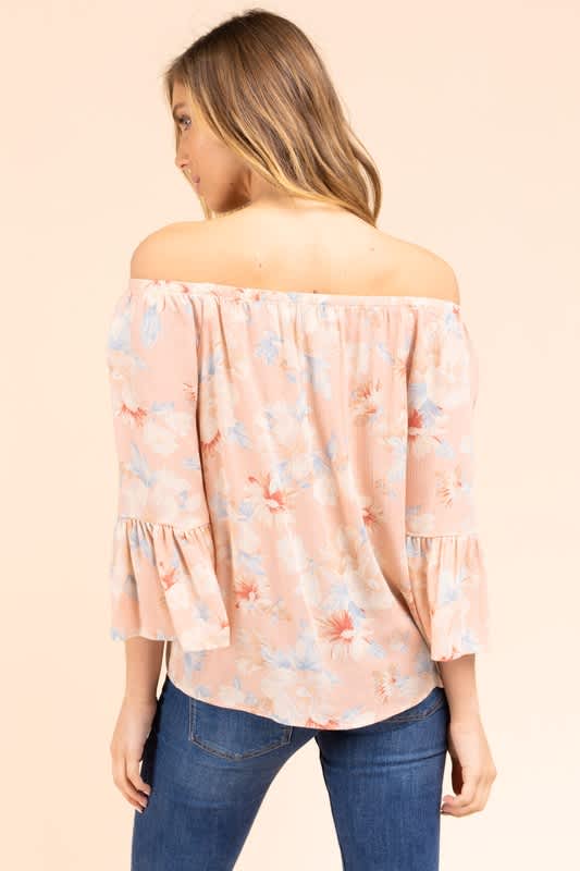 Blush top with gorgeous floral print.