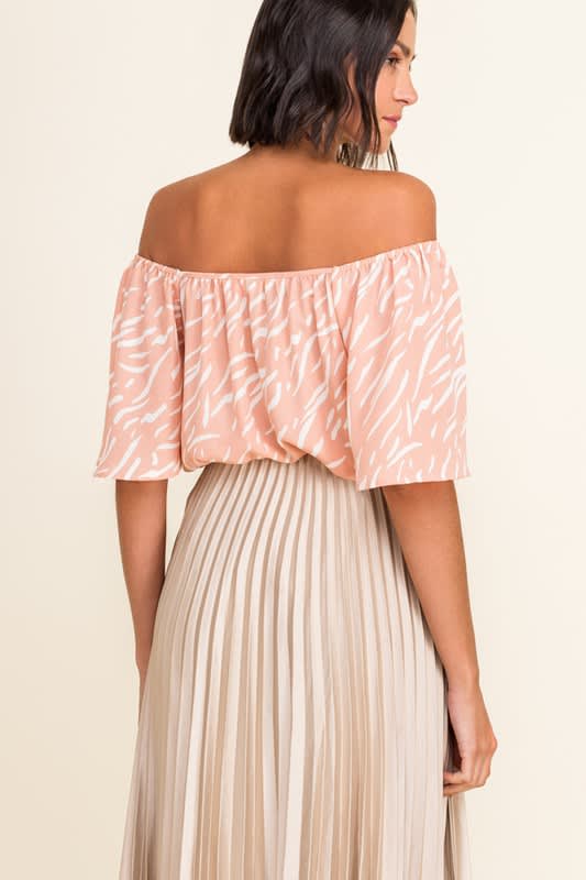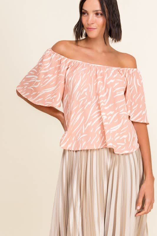 Blush print off shoulder top.