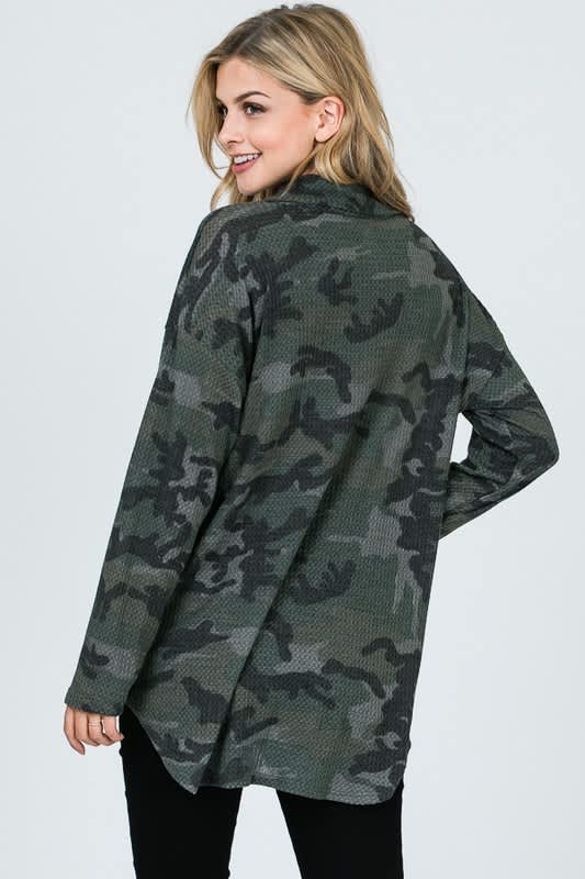Camo thermal tunic with zip front detail.