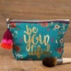 Features mini pom pom trim and stacked pom pom tassel zipper pull. Unlined