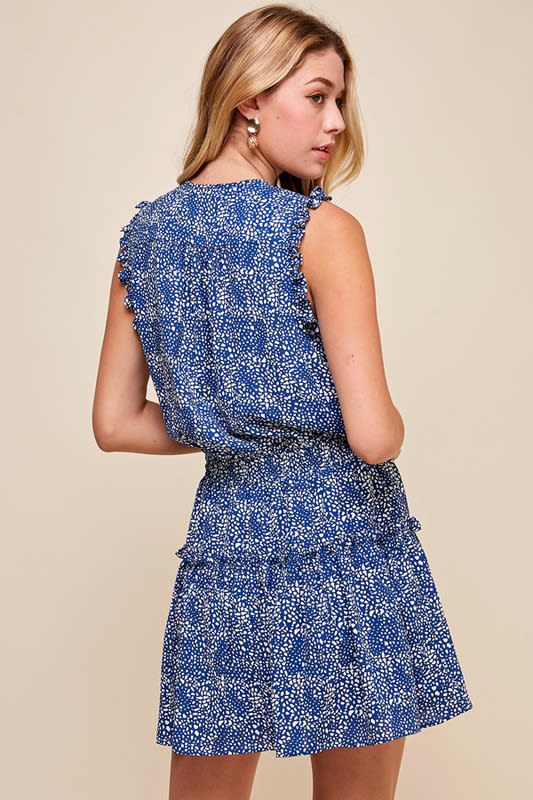 Cobalt print tiered dress.