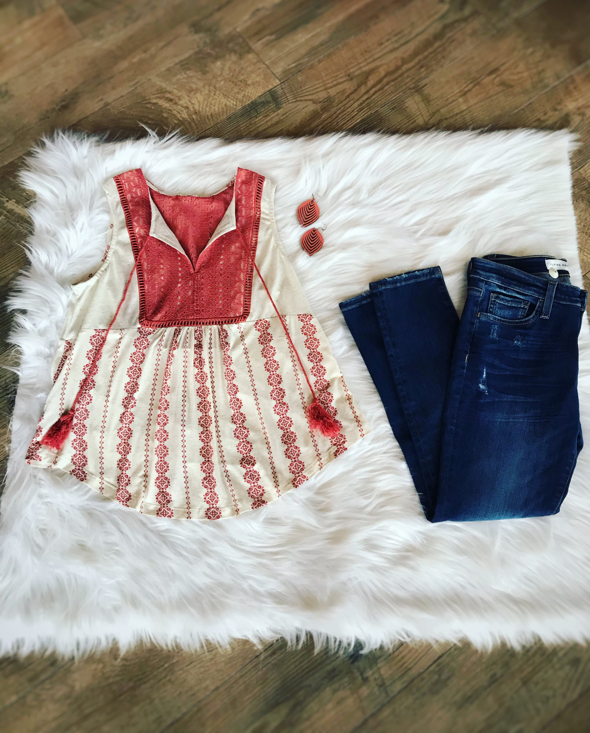Tank top with coral print and tassels.