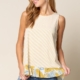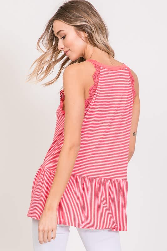 Coral and white striped tank with lace crochet detail.