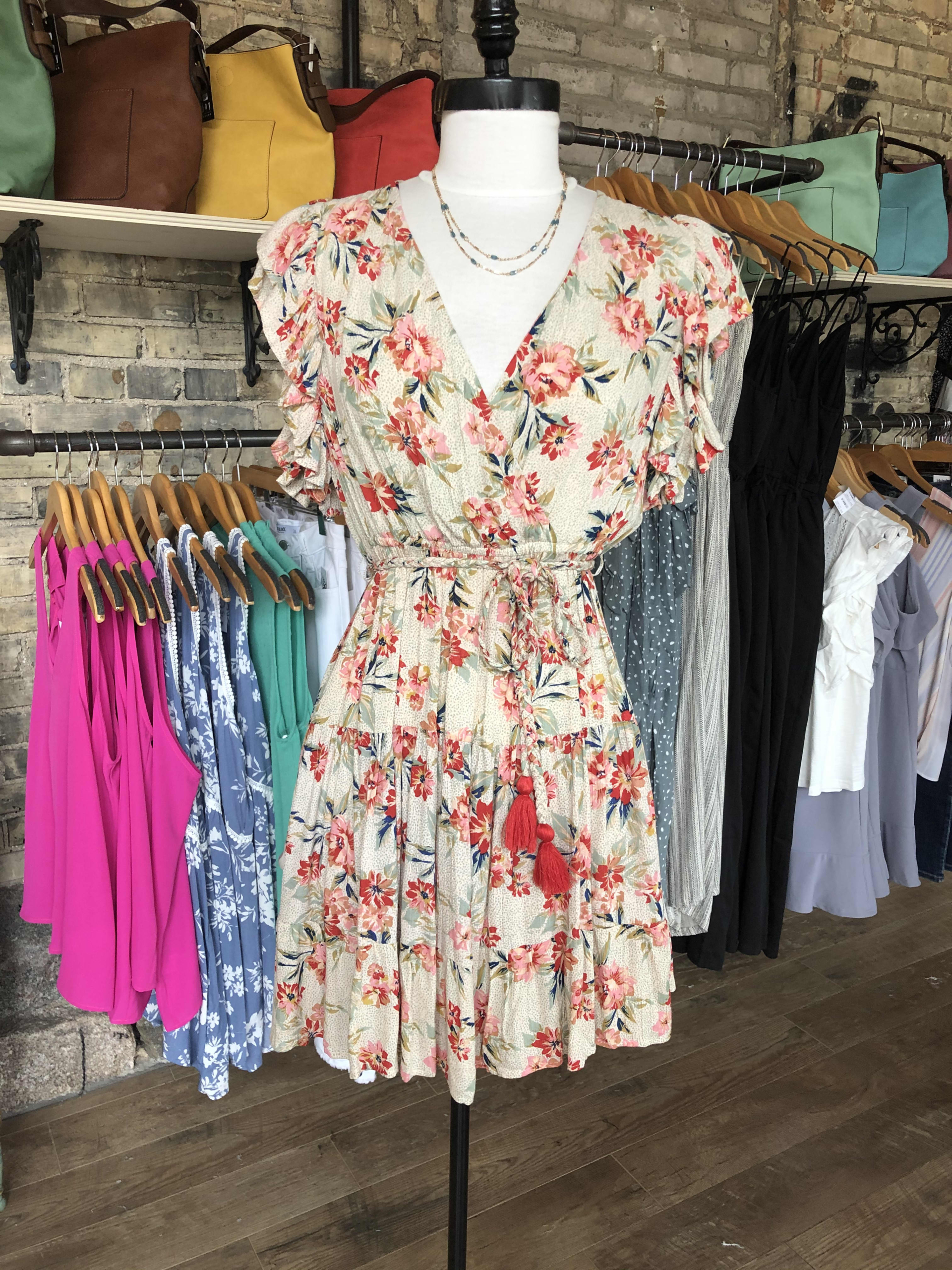 Cute cream floral dress with flutter sleeves.