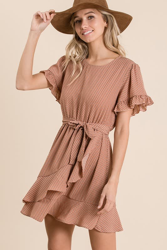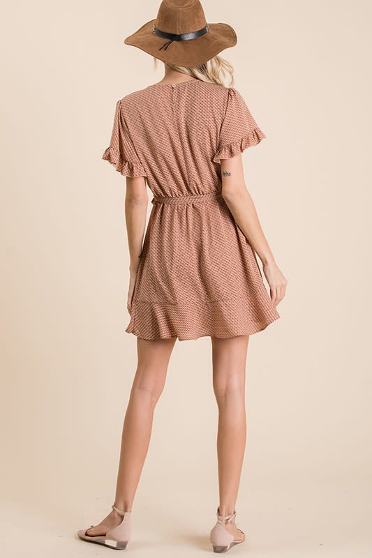 Dusty salmon print dress.