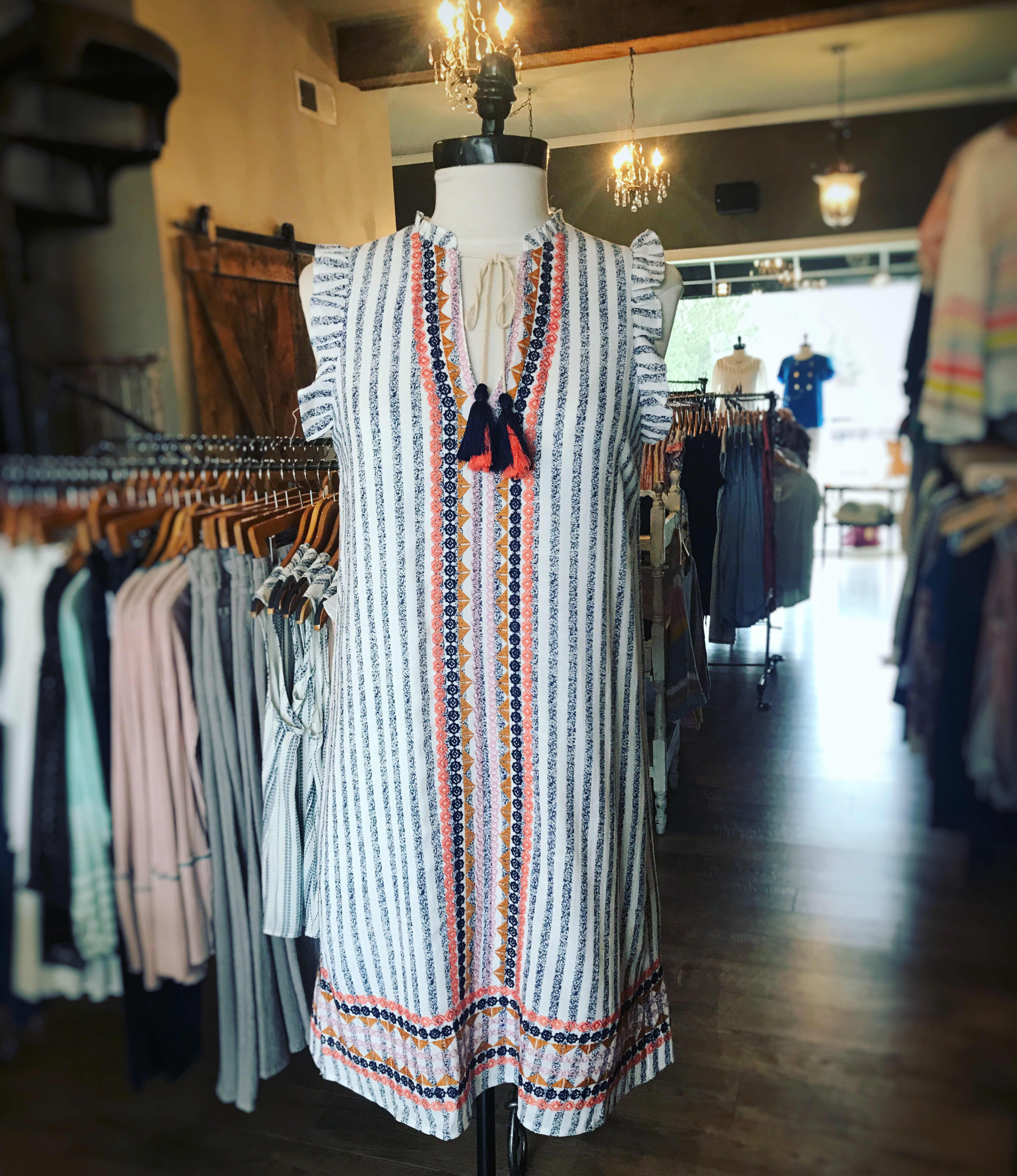 Adorable dress with colorful embroidery detail.