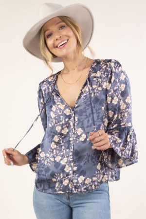 Blue Print Peasant Top