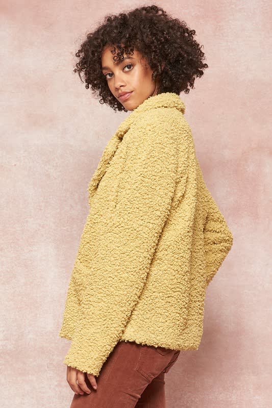 Mustard color faux shearling jacket.