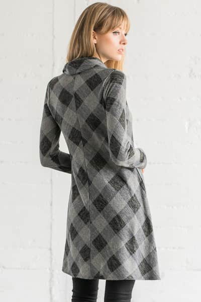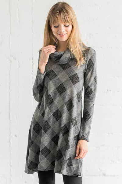 Gray and black checker print sweater dress.