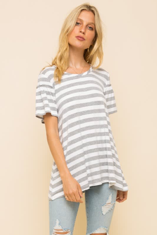 Super soft gray striped top.