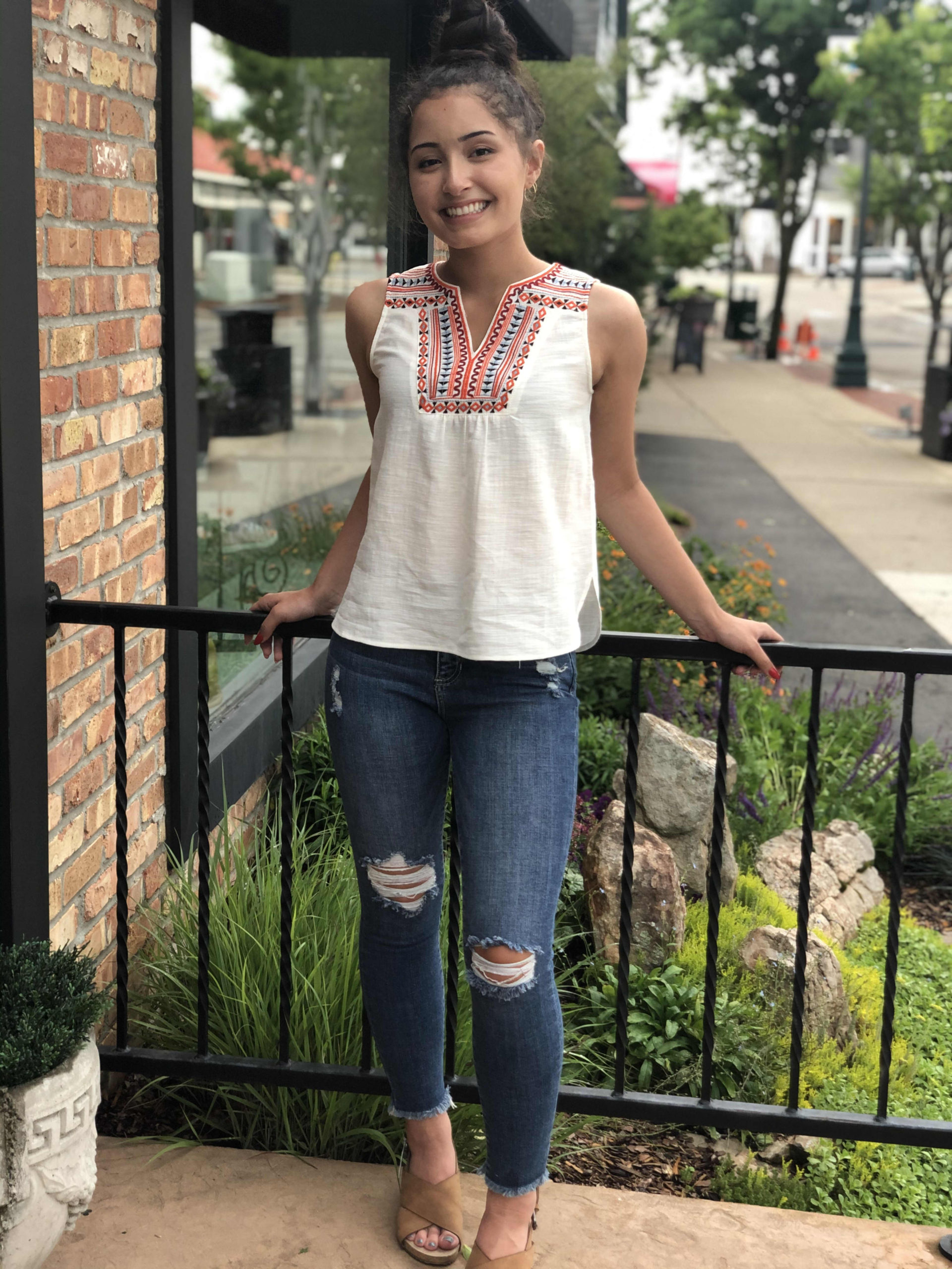 Ivory embroidered tank.