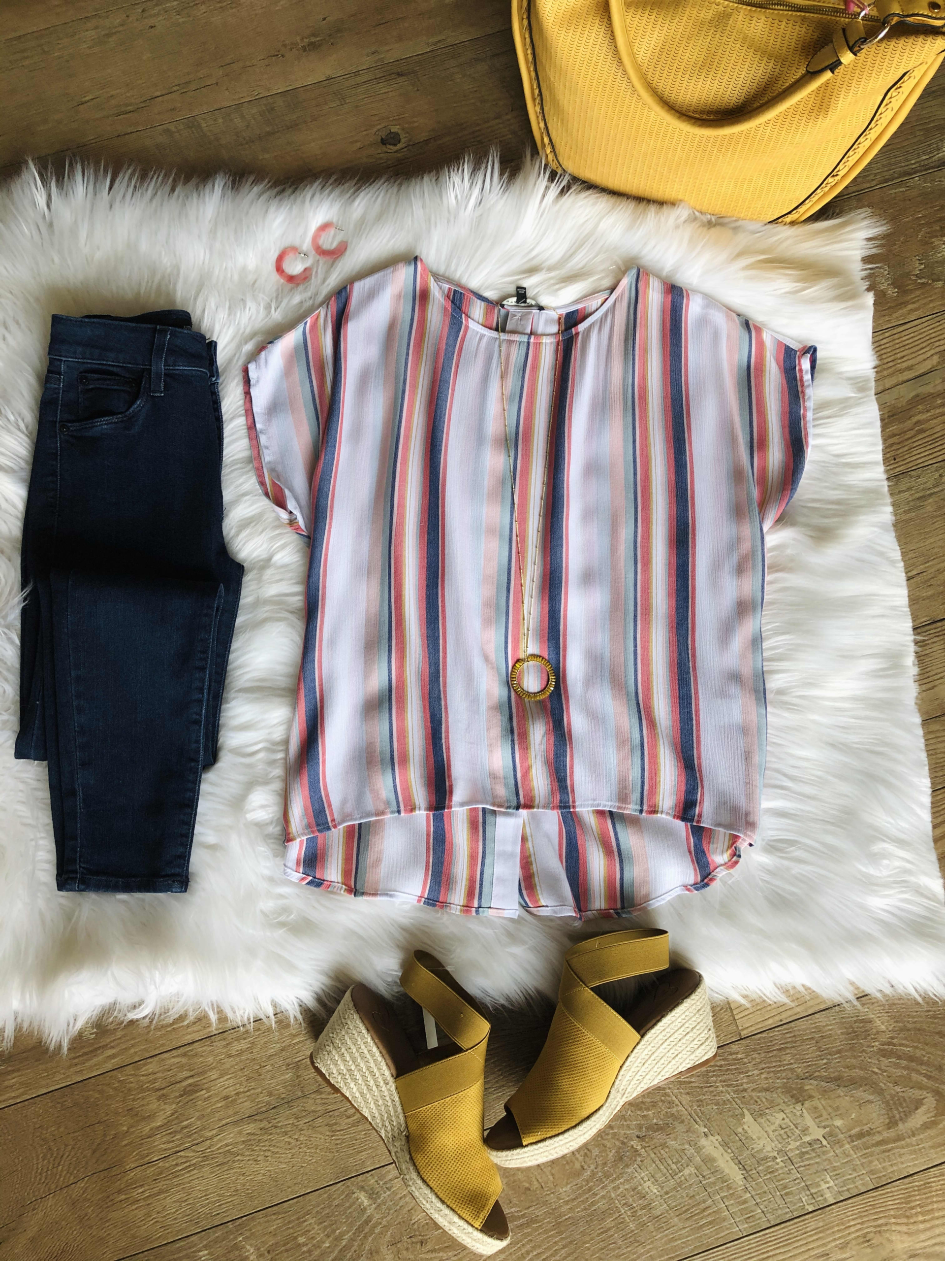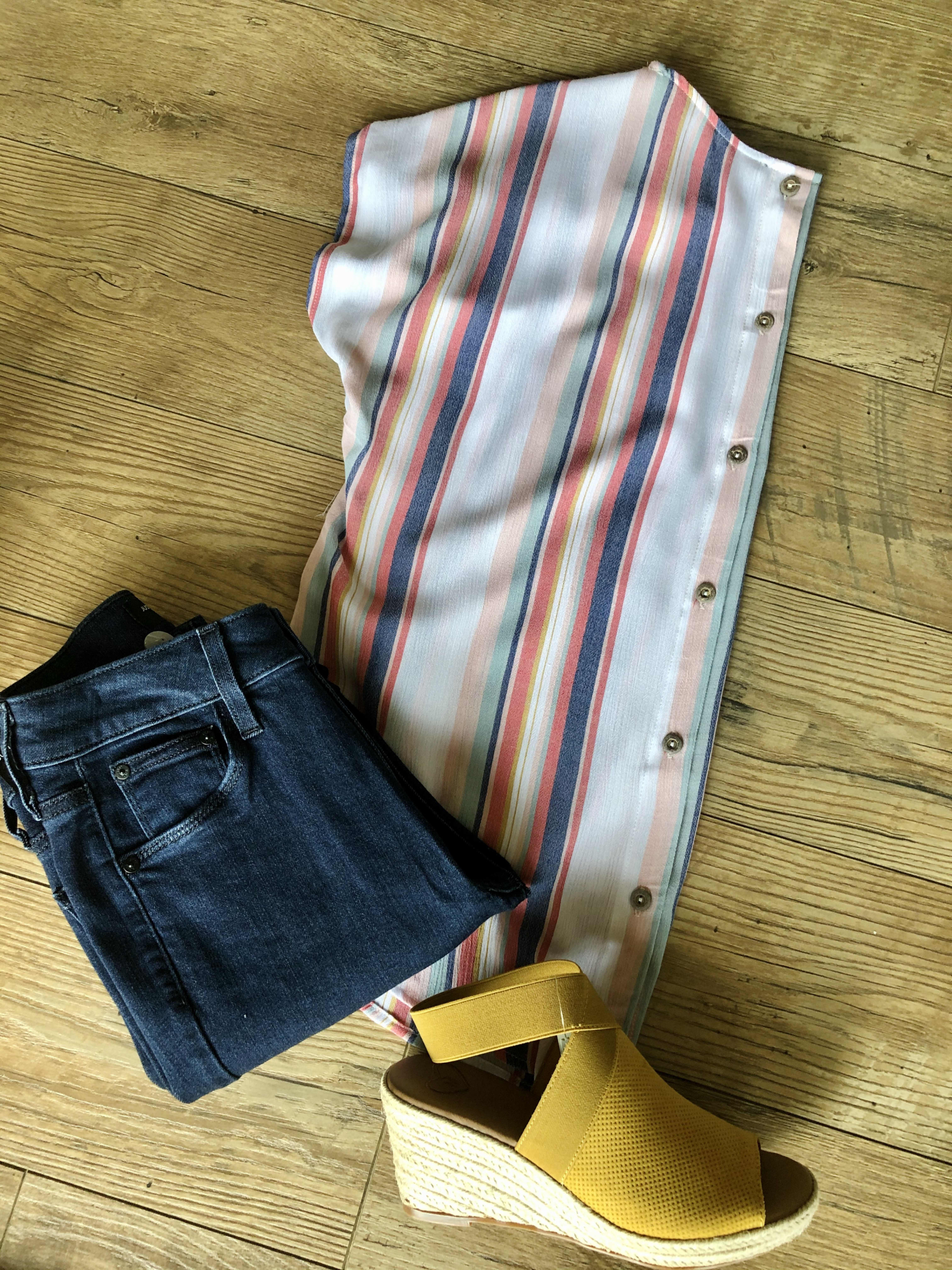 Multi stripe top with cute button back detail.