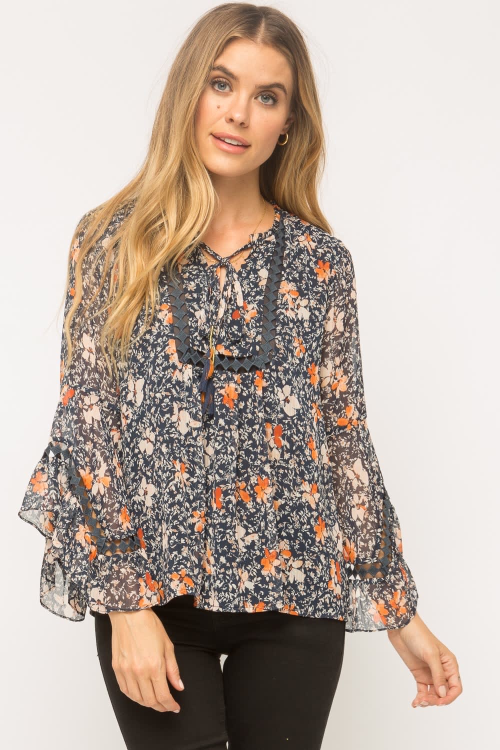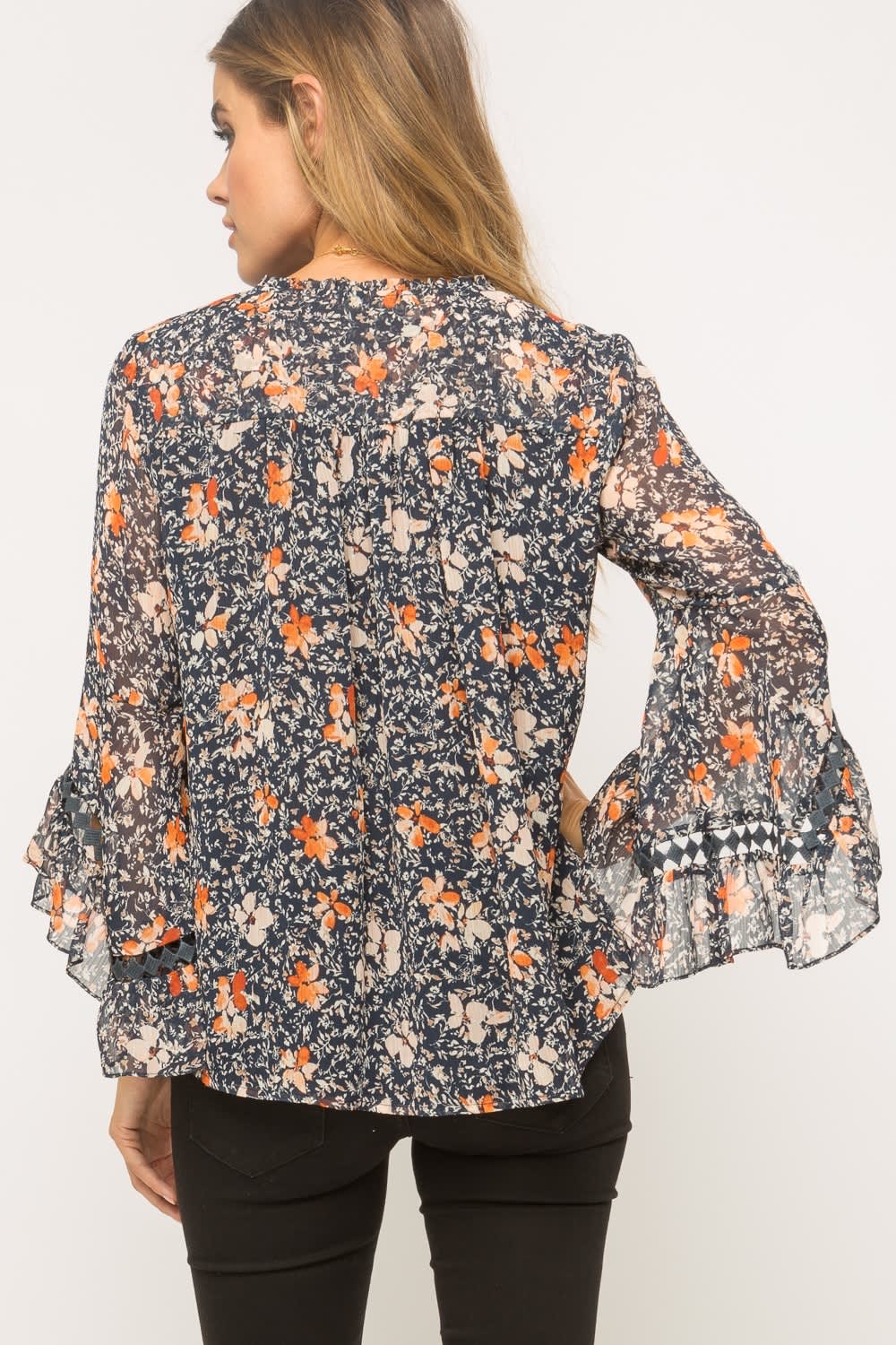 Navy fall floral mix blouse.