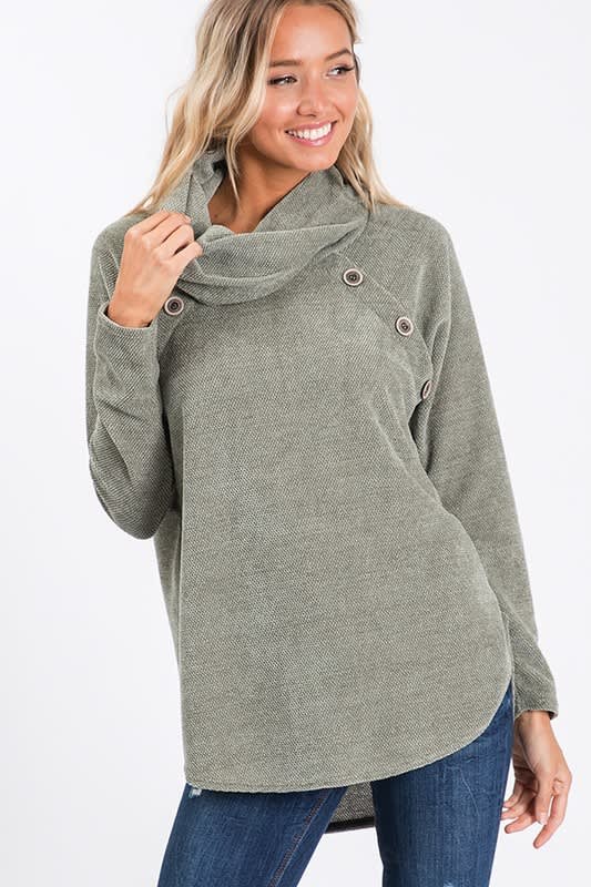 Super soft light olive sweater top with button detail.