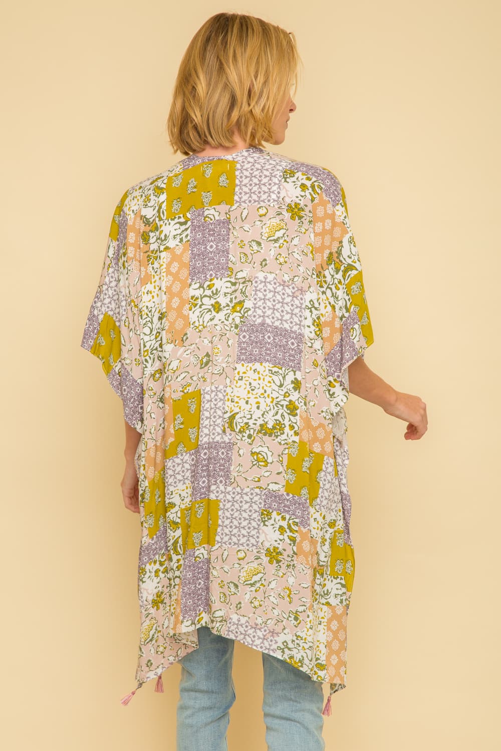 Gorgeous multi print kimono with tassels. One size.
