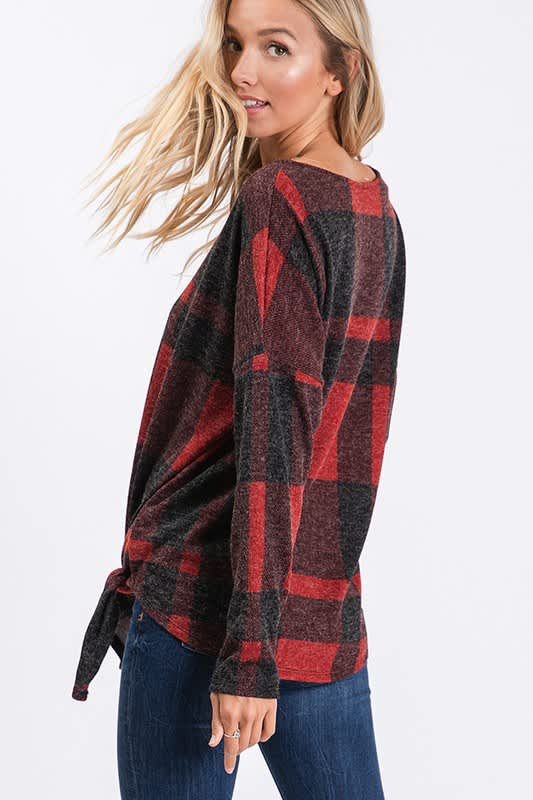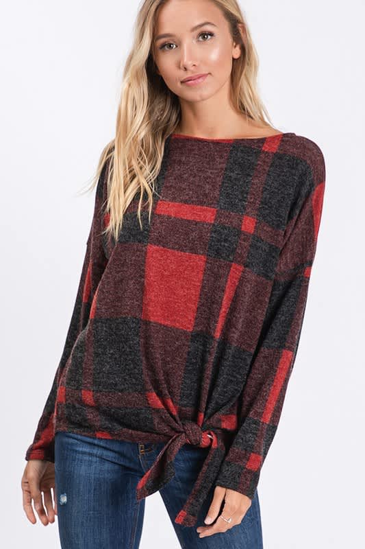 Red and black plaid top with front tie.