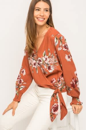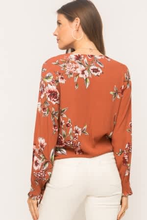 Rust fall floral print top.