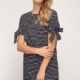 Taupe dress with tie front detail.