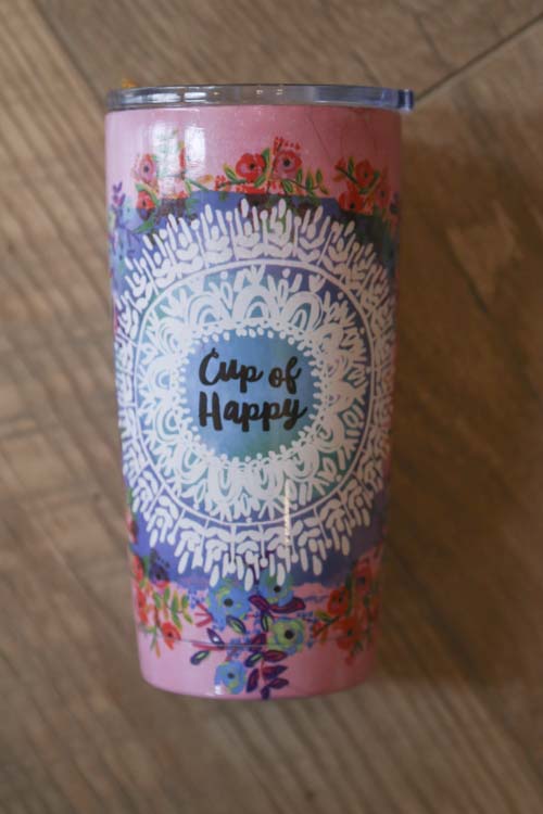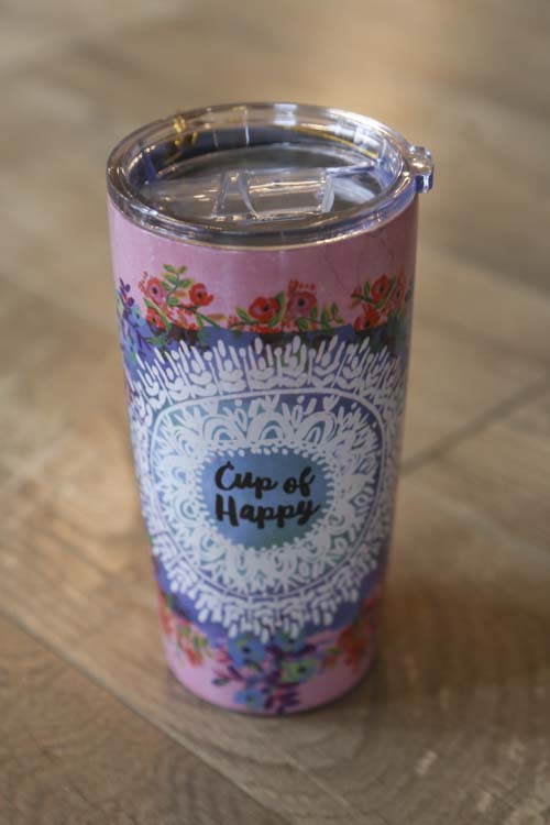 17 oz. double-wall, stainless steel tumbler and lid with rubber seal to keep drinks cold (or hot!) for up to 12 hours!