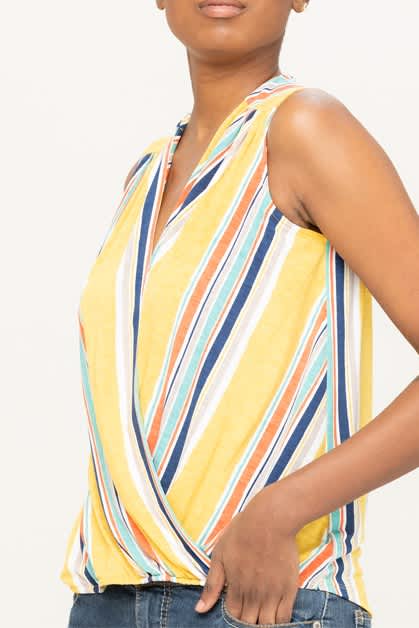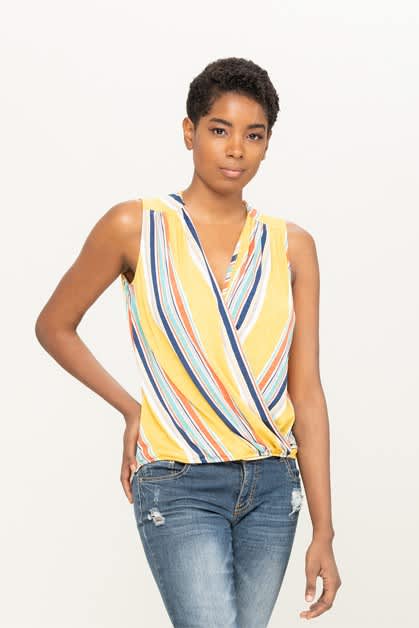 Yellow striped surplice top.
